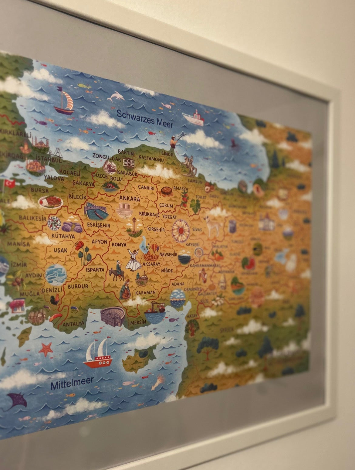 Dieses liebevoll illustrierte Türkei-Poster für Kinder im A3-Format ist ideal, um spielerisch Geografie und Kultur kennenzulernen. Ob im Kinderzimmer, Klassenzimmer oder als Geschenk – mit dieser farbenfrohen Türkei-Karte mit Sehenswürdigkeiten entdecken Kinder die bekanntesten Orte, Tiere und Wahrzeichen des Landes.