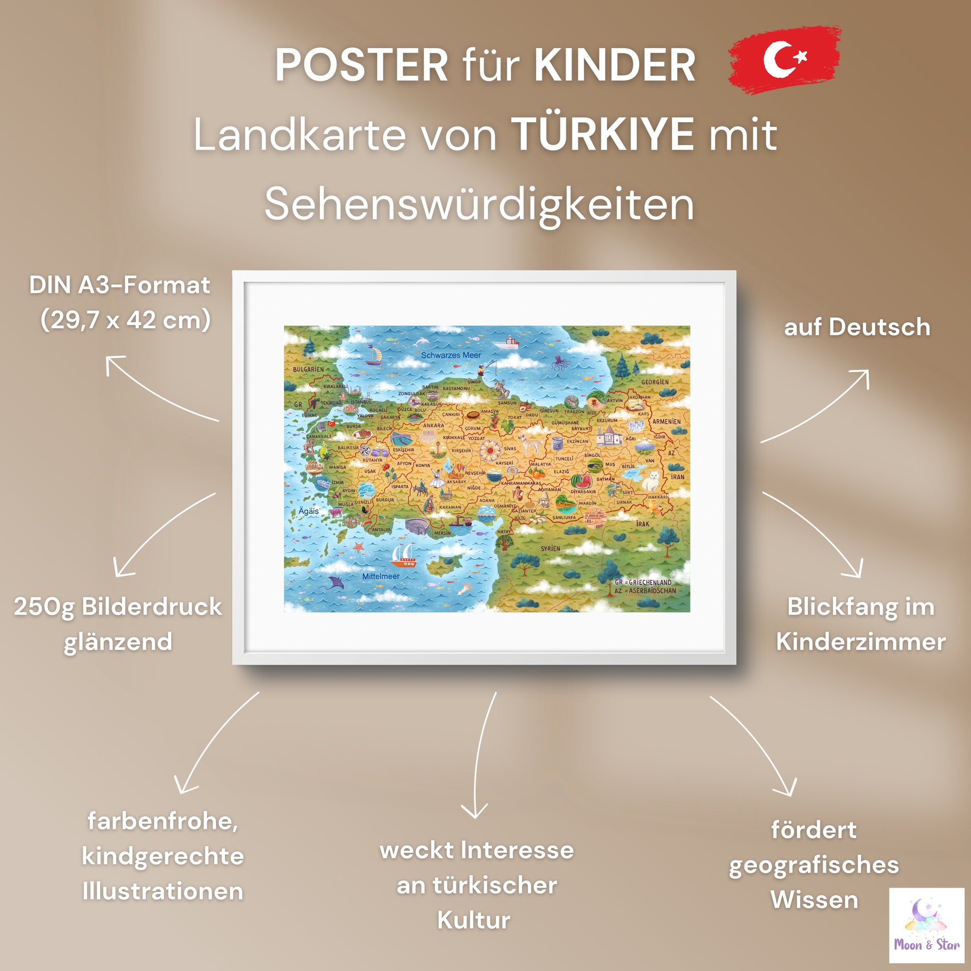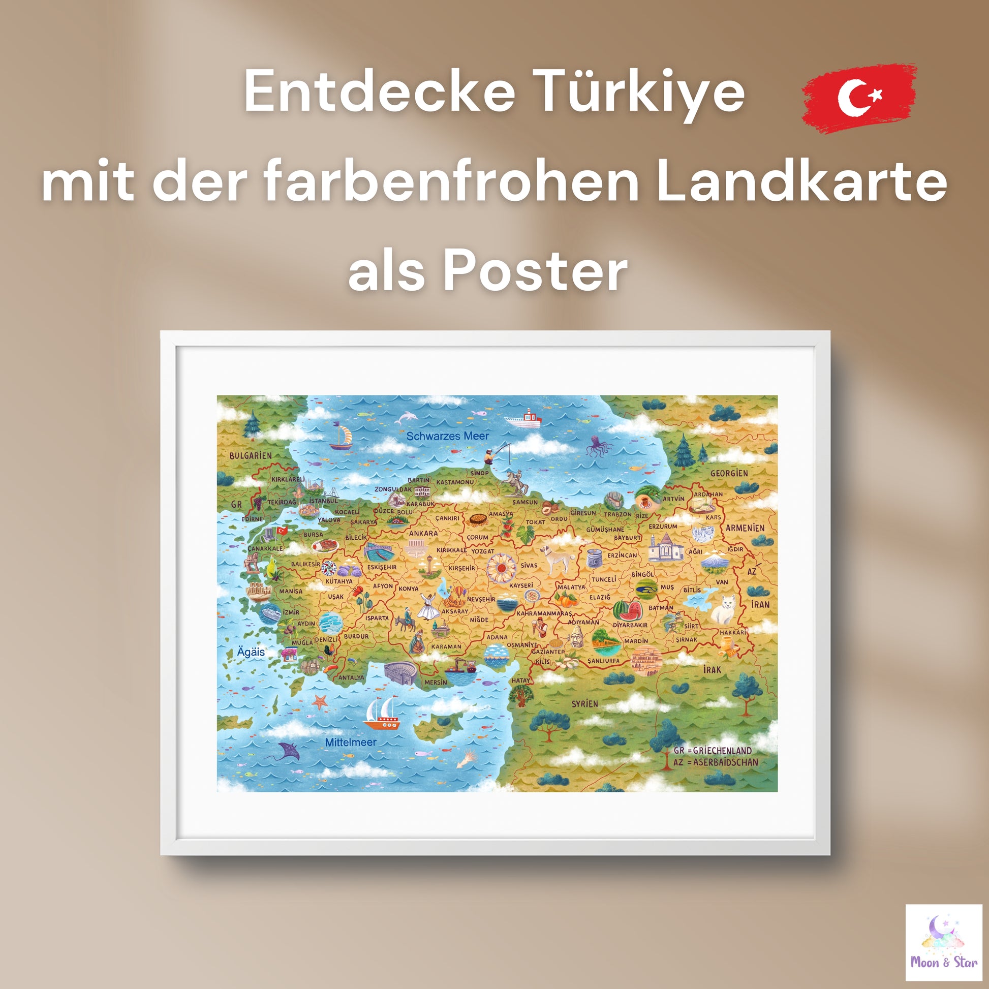 Das Türkei Lernposter für Kinder verbindet Spaß mit Wissen. Ideal für Eltern, Lehrer oder als kreatives Geschenk für türkische Familien oder Türkei-Fans.
